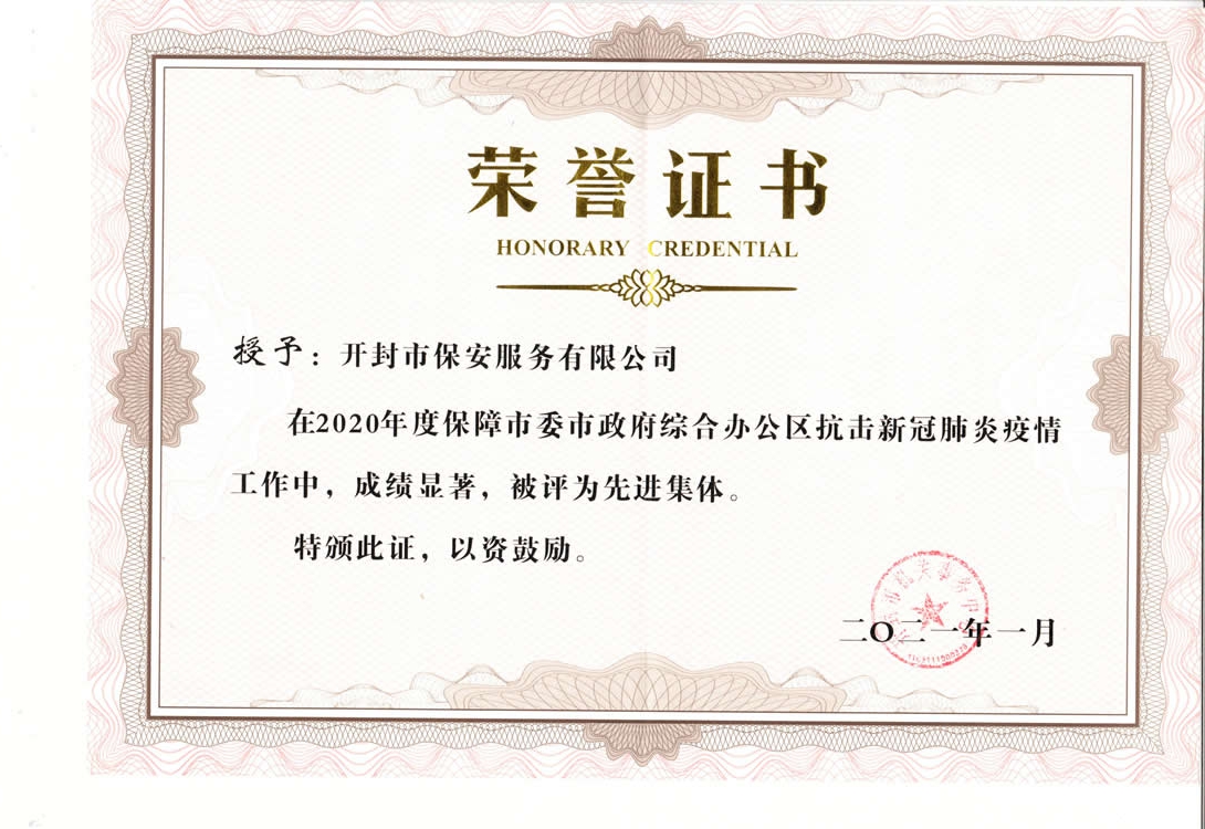 市委市政府綜合辦公區(qū)為我公司頒發(fā)“抗擊新冠肺炎疫情”榮譽(yù)證書